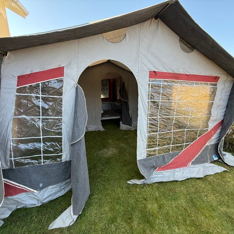 Standbytelt 700 med tilhørende veranda Total og køkken.