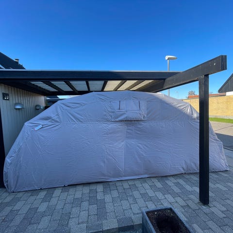Giv et bud! Standbytelt 700 med veranda Total og køkken.