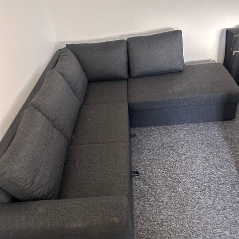Fin mørkegrå sofa / sovesofa, med opbevaring.