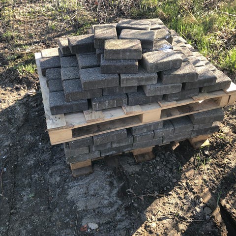 Fliserne ligger tilgængelige for tilkørsel med trailer