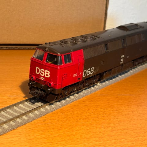 Analog 2-skinne DC model af et fransk SNCF BB-diesellokomotiv lavet af Jouef. Kører fint uden afknækkede eller løse dele, men kan ikke måle sig med moderne modeller.