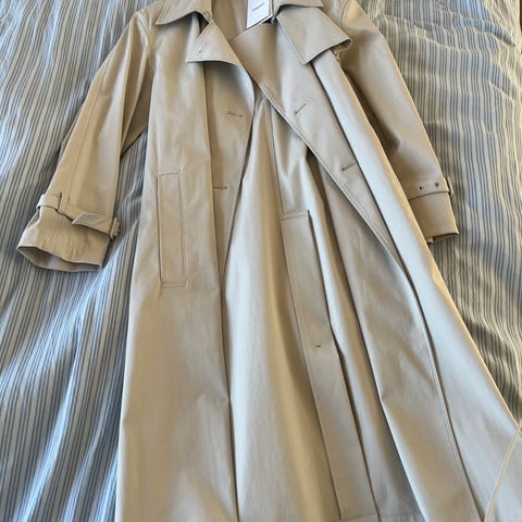 Theory ny trenchcoat til kvinder. Jakken er ecru farvet og fremstillet i bomuld. Modellen har bælte i taljen med spænde og lommer i siderne. Klassisk frakkemodel egnet som overtøj i overgangsperioder og køligere vejr.