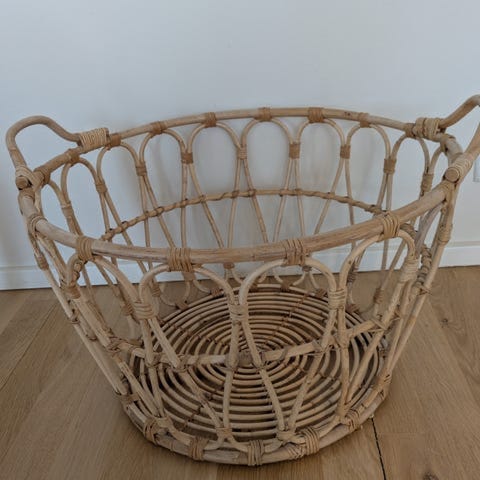 Kurv i bambus. 50cm i diameter og 40cm i højden.