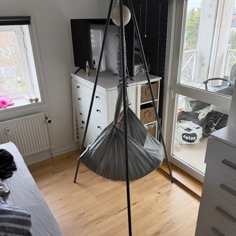 Moonboon slyngevugge med motor og stativ. Stiver til bunden medfølger.