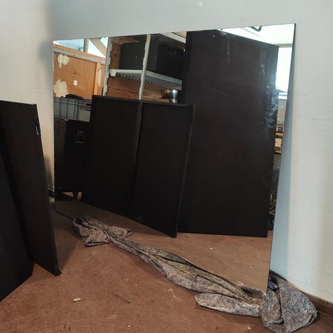 Vi har spartlet flere steder på spejlet, da vi havde en plan om t male det ( men fik det aldrig gjort). Der er afslag på rammen.