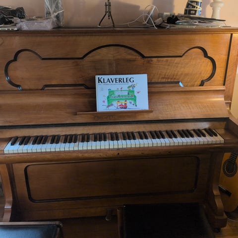 Alle tangenter på klaver er intakte og der medfølger små gennemsigtige fod beskyttere