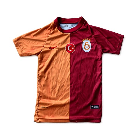 Nike Galatasaray fodboldtrøje i rød og gul halvdelssplit med klublogo på brystet. Trøjen er fremstillet i let, åndbart materiale med Dri-Fit teknologi, der leder sved væk fra kroppen under aktivitet. Klassisk rund hals og kortærmet design egnet til fodbold og anden sport eller som supportertrøje.