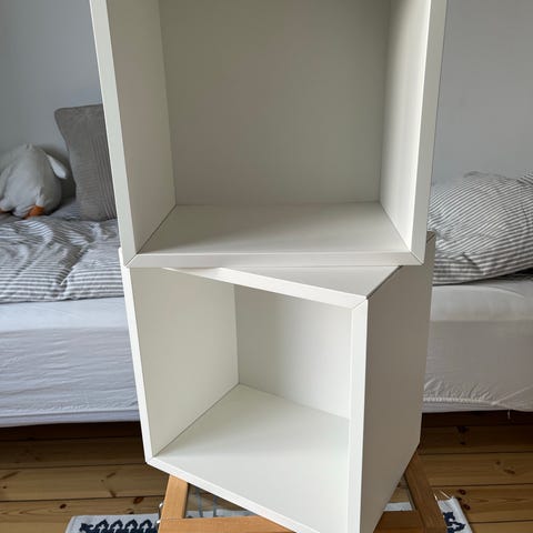 Måler højde 95 cm. Bredde 30 cm. Og dybde 30 cm.