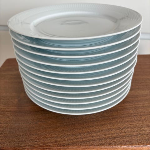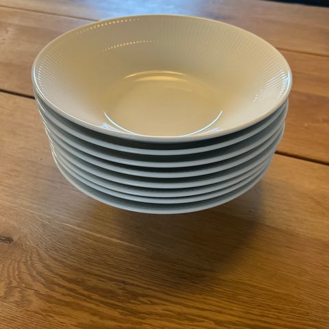 12 stk. Royal Copenhagen Hvid Riflet dybe tallerkner sælges.