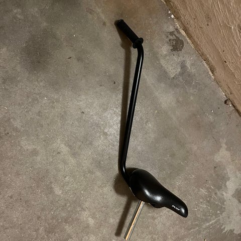 Cykelsadel i sort med tilhørende sadelpind.
