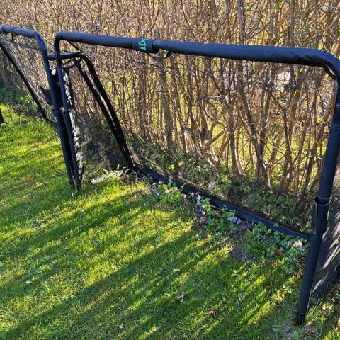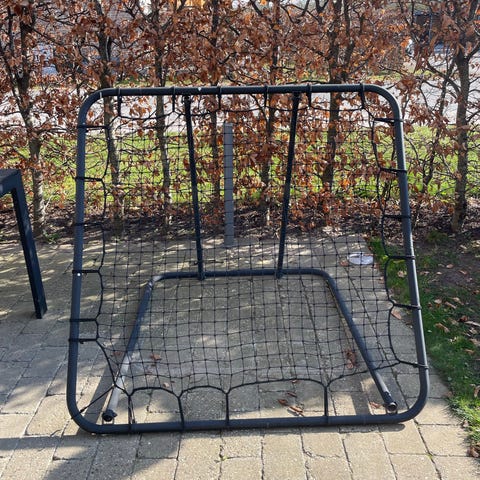 Bestplay fodbold rebounder mål i sort. 120x120cm. Mål med metalstel og net, velegnet til træning af afleveringer, skud og førsteberøringer i haven eller på træningsbanen. Kan bruges af både børn og voksne til individuel træning eller øvelser sammen med andre spillere.