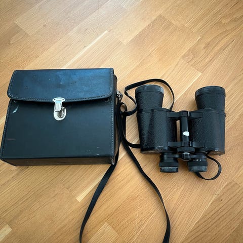 Kikkert i sort med tilhørende skuldertaske. Kikkerten har objektiv- og okularbeskyttere samt bærestrop. Velegnet til f.eks. natur- og fugleobservationer eller andre udendørsaktiviteter, hvor der er behov for forstørrelse på afstand.