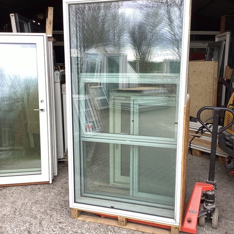 Vindues elementer træ 116*212 2 faste 1 med vindue i midten grå ind- udvendig