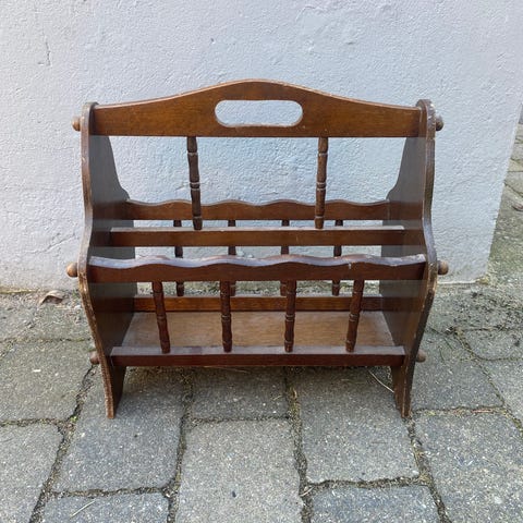 Fin retro magasinholder / blomsterkasse i fyrretræ. Made in Spain. Med specielle messing søm. 16 * 50 * 47 cm.