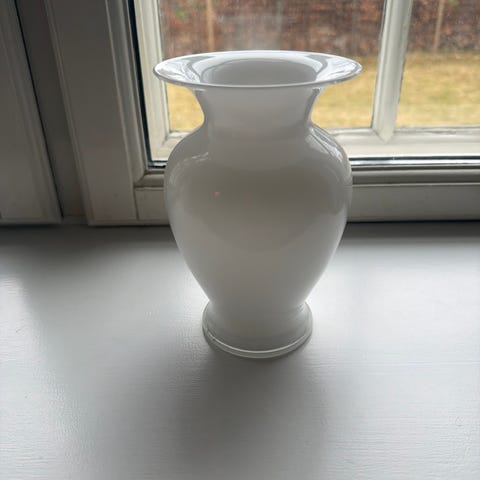 Utrolig smuk vase, i hvid dobbelt lag glas. Meget flot