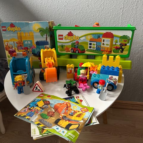 LEGO DUPLO (5,5 kg) klodser og plader blandet lot. Sættet består af forskellige farvede DUPLO klodser, flere store byggeplader samt diverse figurer og dyr som vist på billederne. Egnet til frit byggeri og udvidelse af eksisterende LEGO DUPLO samlinger.
