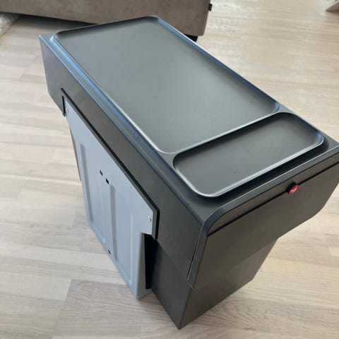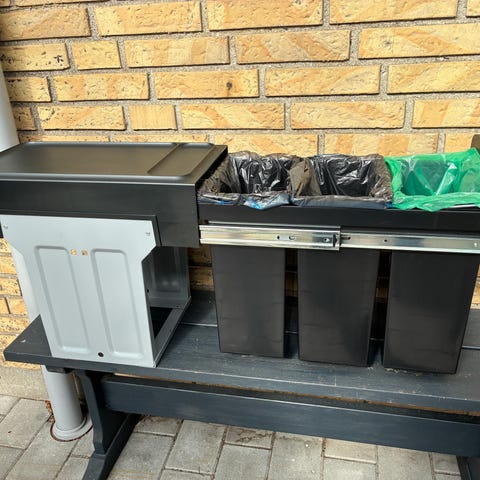 Affaldssortering med udtræk til skabsmontering, der gør det let at sortere husholdningsaffaldet. Perfekt til et lille køkken! Vi har haft det i skab under vasken.
