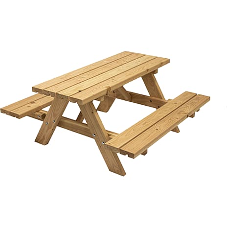 Ny renoveret børne bordbænksæt. Høj kvalitets sæt som ikke kræver meget vedligehold. Bordplade og bænke består af nye brædder i massivt træ, der er fastgjort med nye bolte. Stellet er udført i galvaniseret metalrør som aldrig går til.