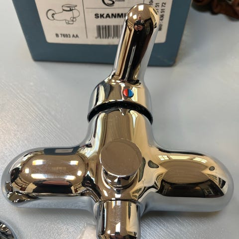 IKEA VALLAMOSSE termostatarmatur til brusebad i forkromet metal. Armaturet er beregnet til vægmontering og har 150 mm centerafstand mellem tilslutningerne. Termostatfunktionen gør det muligt at indstille og holde en stabil vandtemperatur under brusebadet. Passer til standard bruseinstallationer med tilsvarende mål og gevindtilslutninger.