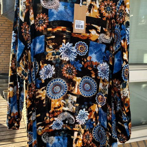 Freequent kjole/tunika i størrelse M. Kjolen er sort med mønster og har korte ærmer. Materialet er primært polyester med elastan for stræk og komfort. Velegnet som hverdagskjole. Krøller ikke. (Nypris 299,-kr) Sender gerne med dao, hvis det ønskes😊 Se også gerne mine andre annoncer🌸👚