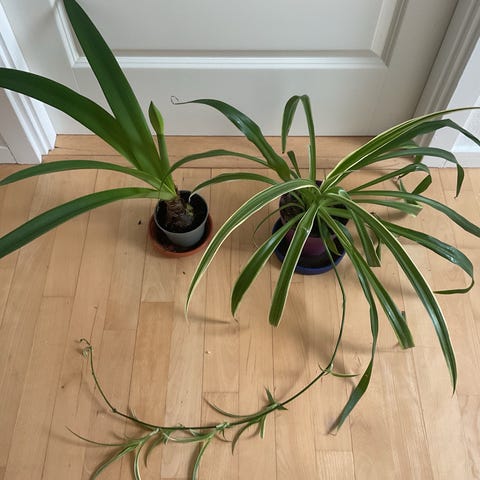 2 væddeløber, de danner stængler med nye planter, disse kan du sætte i potter og få nye planter.