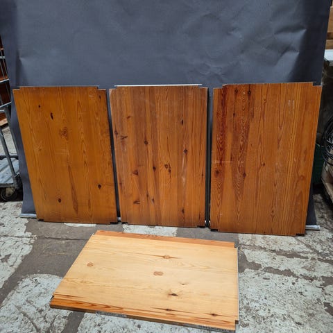 Har også to kryds til at stabilisere reolen bagpå og metalsplitter til at sætte hylderne i reolen.