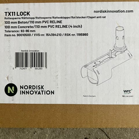 Nordisk Innovation NI TX11 rottespærre, universal, Ø100/110 mm.