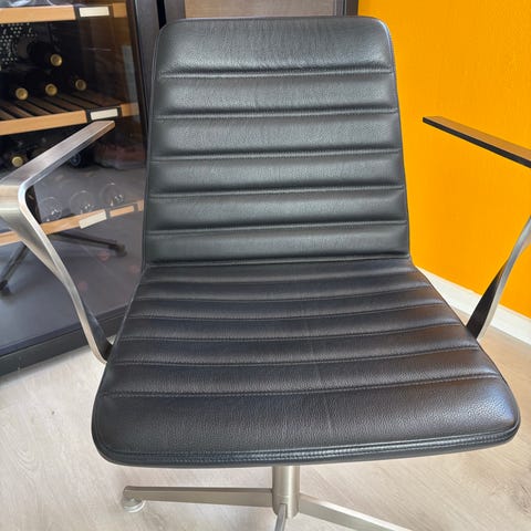 Flot kontorstol med hjul. God siddekomfort. Armlæn. Har et mærke - prisen er sat derefter (se billede).