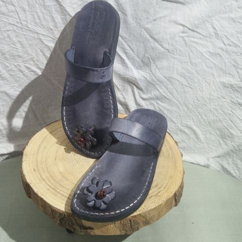 Tå split sandalerne er i skind både remme og indvendig sål. Lukket strop til storetåen, og reguler bar kryds rem over vristen. Flad bund og rand syning.