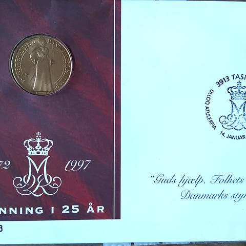 Færøerne, mønter, 20, 1997, Mønten er præget i anledning af Dronningens 25-års jubilæum
