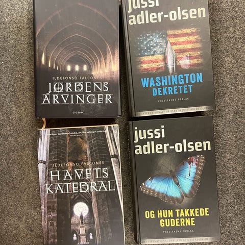 Jussi Adler-Olsen og Katrine Engberg krimibøger i paperback: Paperback/Politikkens Forlag "Offer 2117" 8. bind i serien Afdeling Q af Jussi Adler-Olsen samt hardback "De hvide nætter" af Katrine Engberg, 2. bind i den nyeste serie med Liv Jensen. Begge bøger er danske romaner inden for krimigenren med trykt tekst på dansk. Velegnet til læsere af moderne nordisk krimi og spændingsromaner.