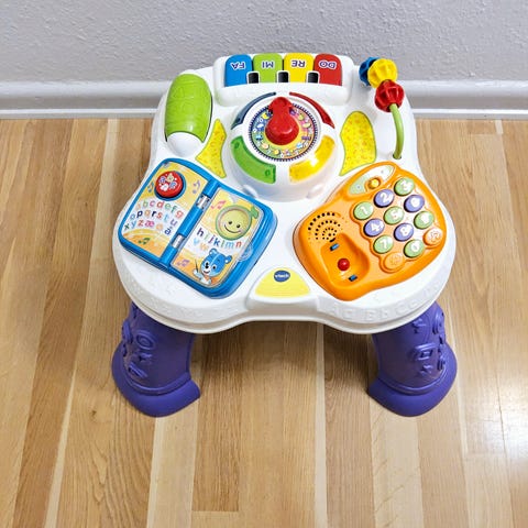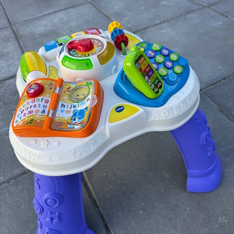 Vtech aktivitetsbordet har seks lærestationer, som aktiverer barnet på forskellige måder. Barnet lærer om bogstaver, former, tid, tal, musik og farver. Bordet kan vokse med barnet, fra det kan sidde ned, til det kan stå op.