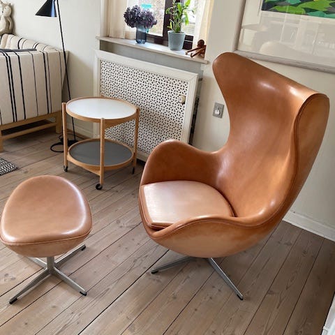 Smuk og ikonisk Ægget stol designet af Arne Jacobsen/Fritz Hansen Stolen fremstår i rigtig flot stand uden synlige brugsspor og er passet godt på.