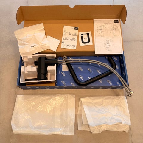 Brusesættet er slet ikke brugt - æsken er åbnet, men det har ikke været sat op.