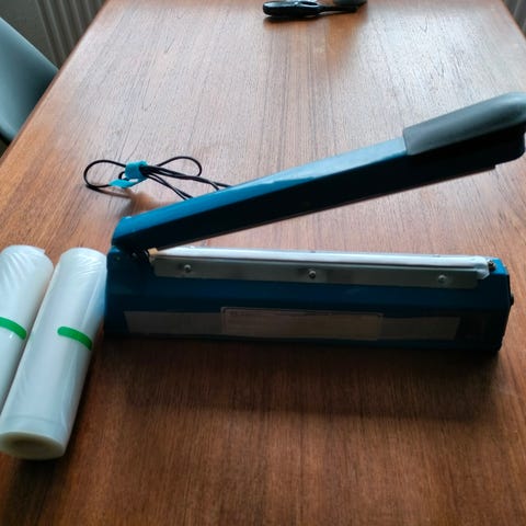 Cook & baker vakuum pakker sælges. Den har været brugt meget lidt, og fremstår stort set som ny. Der medfølger nogle ruller plast til vakuum pakning (se billederne).