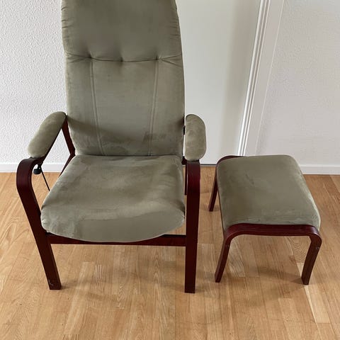 Stol med uld. Kan vippes i ryg. Gråbrun uld. Afhentning i Viby