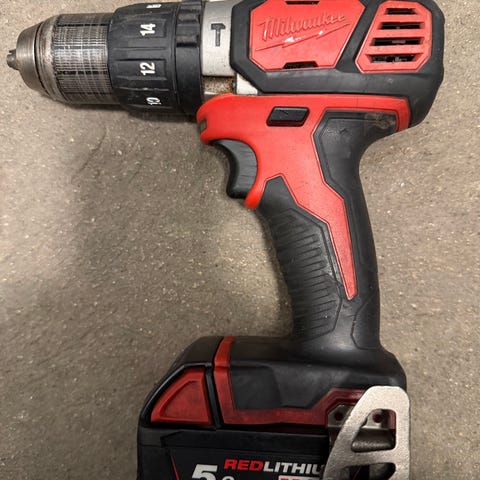 Milwaukee M18 FPD2 slagbore-/skruemaskine med Milwaukee REDLITHIUM-ION 5ah batteri. Kompakt model. Kan sendes på købers regning.