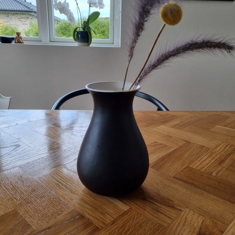 Den har en ridse i toppen, vist på billede.