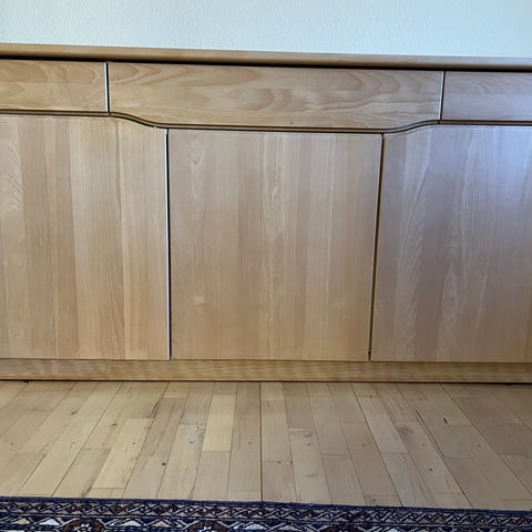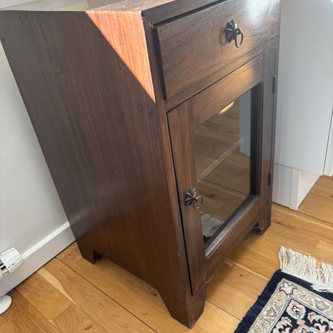 Olieret skab i eg - med hylder og låger.