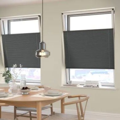 Plisségardiner i mørkegrå farve. Gardinerne har plisseret struktur og leveres med tilhørende skinner og beslag, som ses på billederne. Velegnet til montering i vinduer i f.eks. køkken, stue eller spisestue for at regulere lysindfald og indkig. Flere gardiner og skinner medfølger i samme stil og farve. jeg har 10 stk 2 på 140 , 1 stk 90 , 3 stk på 100 , 4 stk på 110 . har været sat op i 4 måneder , sælges enkeltvis eller samlet nypris fra 249 til 349 kr , ring eller skriv på 20993497