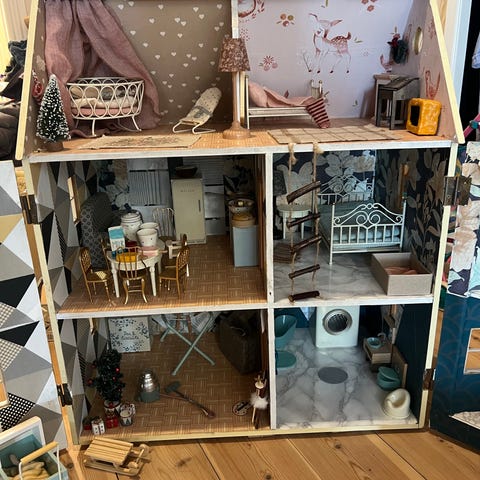 Konges Sløjd Cherry gulvtæppe der ligger under dukkehuset er solgt.