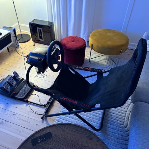Piranha racing seat med logitech G29 rat og pedaler.