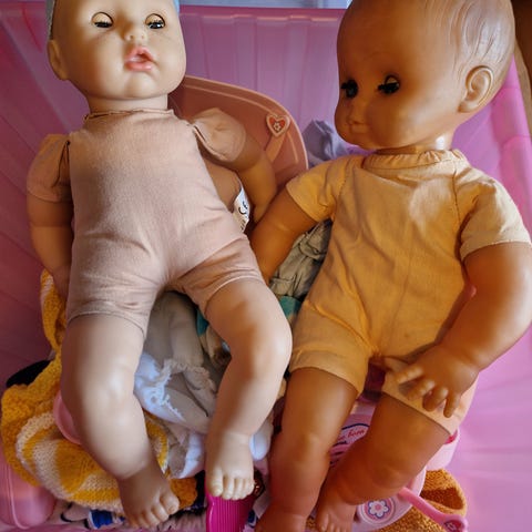 Begge dukker er 40 cm lange. Dukkerne koster 40,- kr. stykket og begge to for 75,- kr.