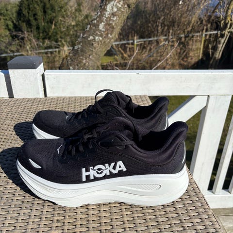 Hoka Arahi 7 løbesko i størrelse 40. Dame Modellen er en løbesko med overdel i åndbart mesh i sort og mellemsål/ydersål i hvid med sorte gummipartier.