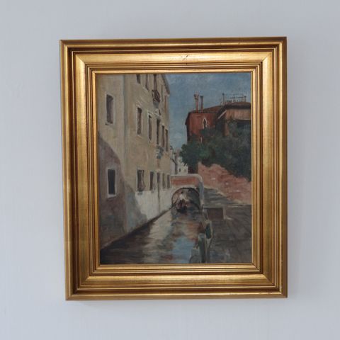 Maleri venedigmotiv gondoler og kanaler Ejnar Ivan Bruus