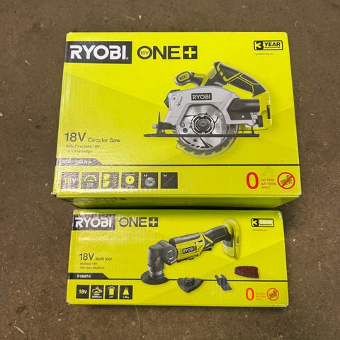 Ryobi One+ batteridrevne elværktøj bestående af flere maskiner og tilbehør. Sættet omfatter rundsav (hp), slagboremaskine (hp), stiksav, multiværktøj, delta sliber samt en kompakt kompressor/luftpumpe. Der medfølger også batteri 1,5 A og oplader.