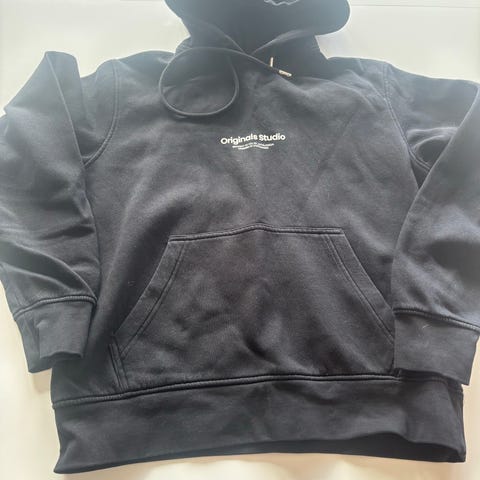 Jack & Jones hættetrøje til herre i størrelse S. Trøjen er grå og fremstillet i bomuld. Modellen har hætte med snøre, ribkanter ved ærmer og bund samt kængurulomme foran. På brystet er der trykt Jack & Jones-logo med farvede felter. Velegnet som casual hverdagstrøje eller som ekstra lag i køligere vejr.