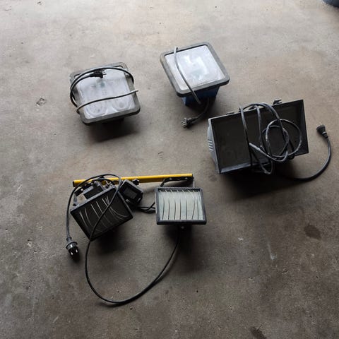 Halogentric arbejdsprojektør med halogenpære og IP44-klassificering. Lampen er monteret på gul stativramme med bærehåndtag og har gitter foran glasset. Tilsluttes 230V via netkabel med stik. Velegnet som arbejds- eller byggepladsbelysning indendørs eller under overdækning, hvor der er behov for retningsbestemt, kraftigt lys.