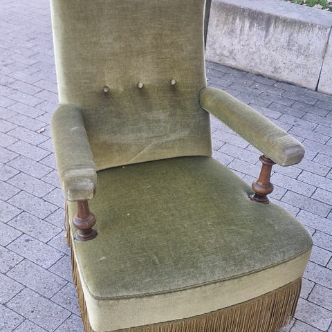 Smukkeste gamle stol. Med fin patina, ingen skader på flet., fin stand. Jeg har to men må sælge denne ene, da jeg ikke har plads til den i ny lejlighed. Befinder sig på Frederiksberg.