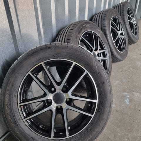 Sortmalede 15” alufælge med Continental EcoContact 5. Sommerdæk. 5-6 mm mønster.